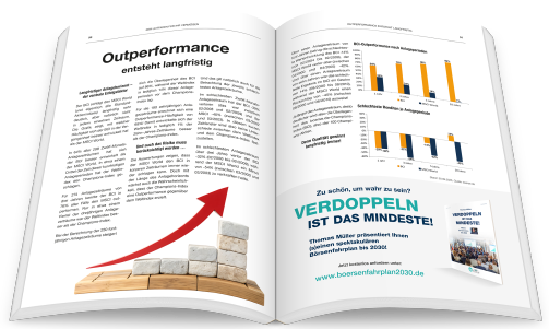 Der „Leitfaden für Ihr Vermögen“ vermittelt Ihnen das notwendige Wissen, um erfolgreich an der Börse anlegen zu können. Bestellen Sie hier den aktualisierten Leitfaden im boerse.de-Paket zusammen mit vier Mega-Postern für die Börse kostenlos und unverbindlich oder lesen Sie den Leitfaden jetzt digital.